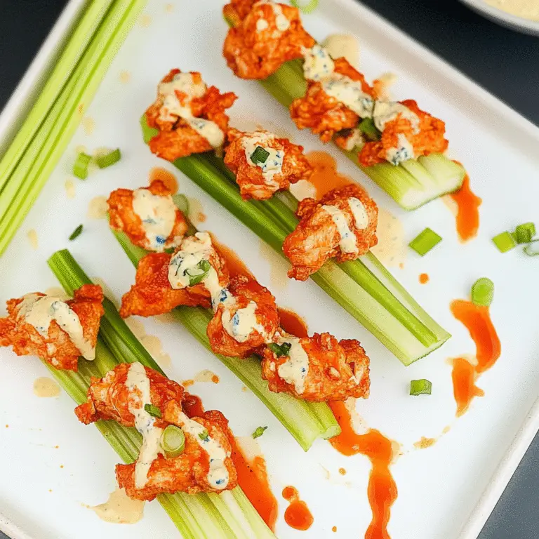 Spicy Buffalo Chicken Celery Sticks with Blue Cheese Delight