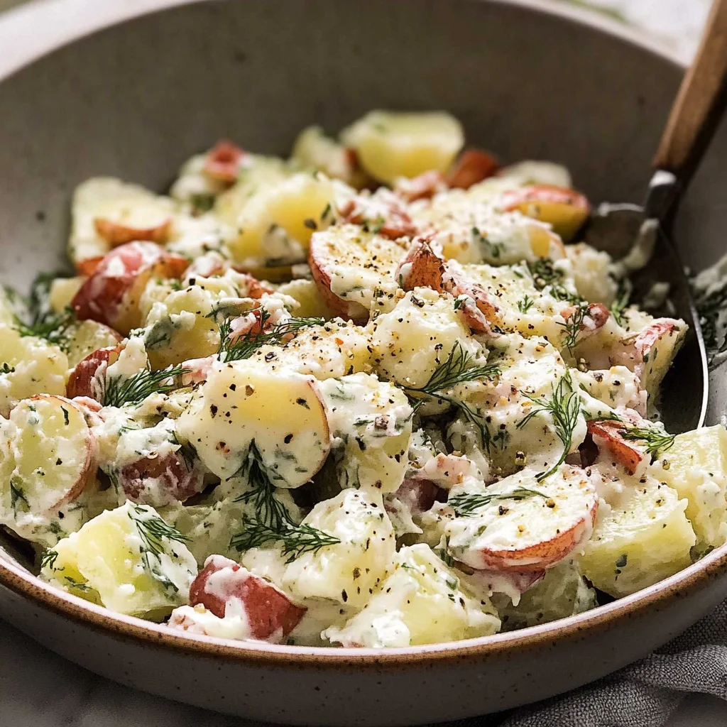 Start by boiling the potatoes until tender, then let them cool. While they cool, prepare the dressing with Greek yogurt, lemon juice, and herbs. Combine everything in a large bowl for maximum flavor blending before serving.