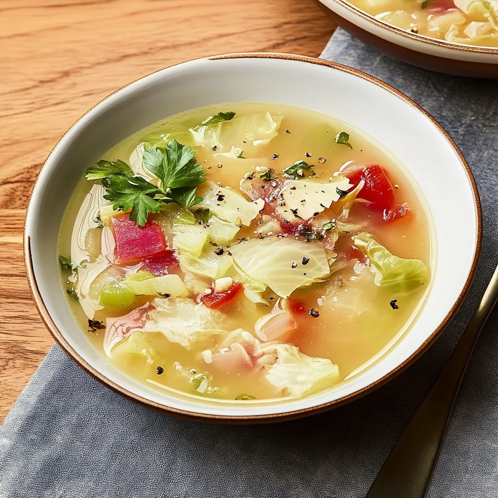 In summary, this cabbage soup recipe is both simple and delicious. With basic ingredients like cabbage, onions, and broth, you can create a hearty dish that warms the soul. The preparation is quick and easy, making it ideal for any weeknight dinner or meal prep session. Enjoy your homemade cabbage soup as a nutritious option that keeps well in the fridge or freezer. Embrace its versatility by experimenting with different vegetables and spices that suit your personal taste!