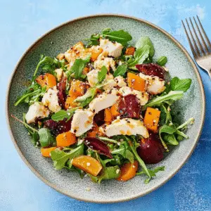 Grab your favorite bowl (the one that makes you feel fancy). Start layering: add spinach first as a base, then top with chicken pieces, bell peppers, cucumber slices, and maybe even some avocado if you’re feeling extra glamorous.