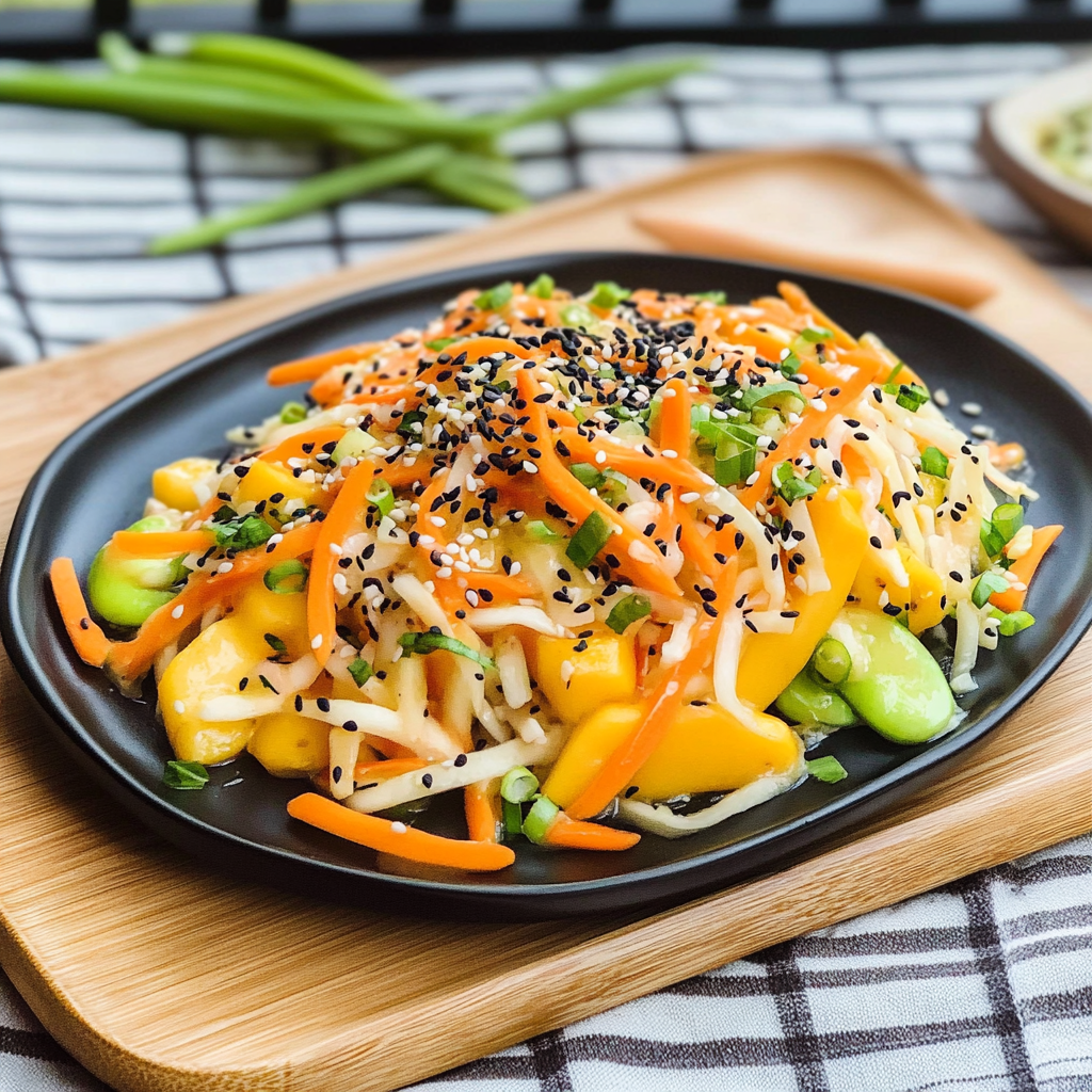 Kani Mango Salad with Creamy Yuzu Dressing is like a tropical vacation for your taste buds. Imagine the crunch of fresh veggies, the sweetness of ripe mango, and the tender embrace of kani (imitation crab) all tossed in a creamy yuzu dressing that dances on your palate. miso glazed Brussels sprouts This salad doesn’t just look pretty; it sings a delicious melody that invites you to dig in, one colorful bite at a time.