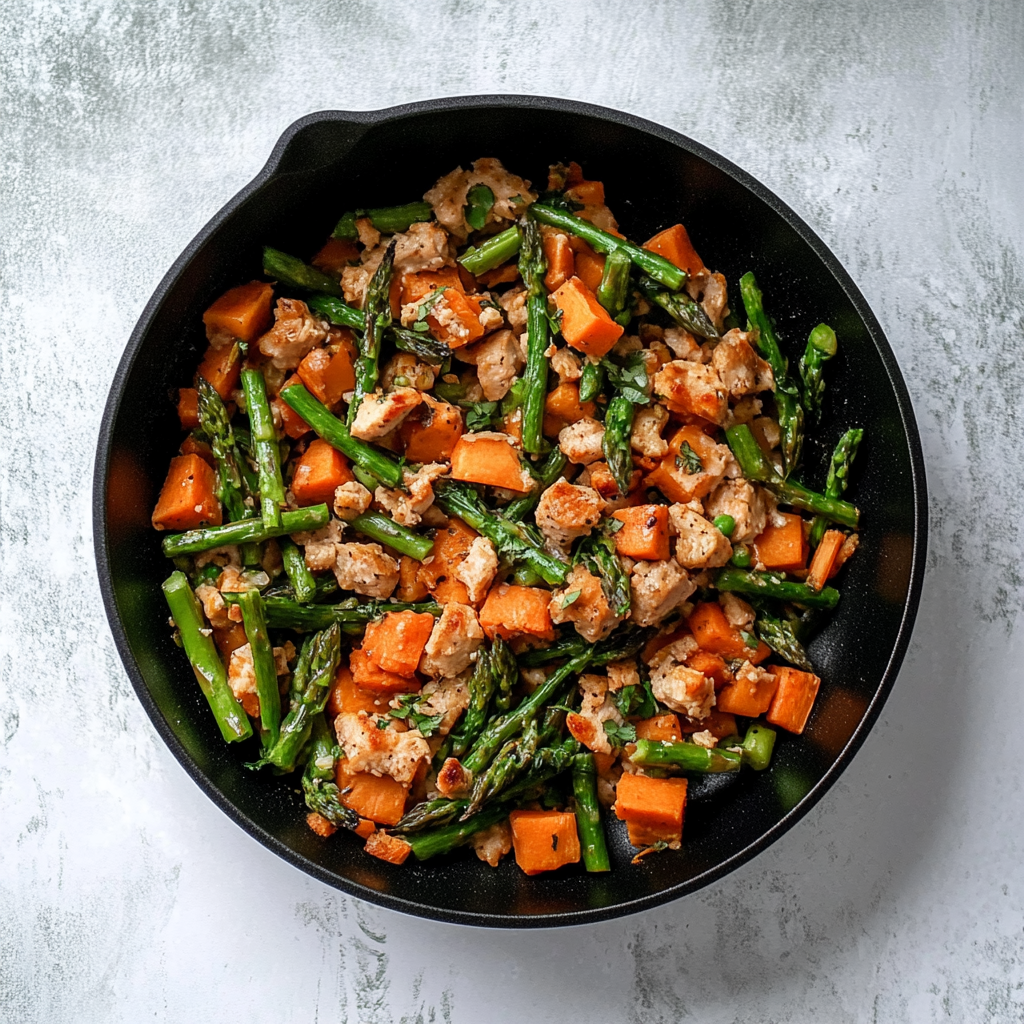 - This Asparagus Sweet Potato Skillet is not only quick to make but also packs a punch with its vibrant flavors.