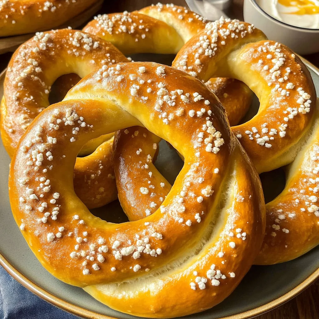Sprinkle coarse salt over the pretzels before baking them at 450°F (230°C) for about 12-15 minutes until golden brown. Get ready for some serious kitchen magic!