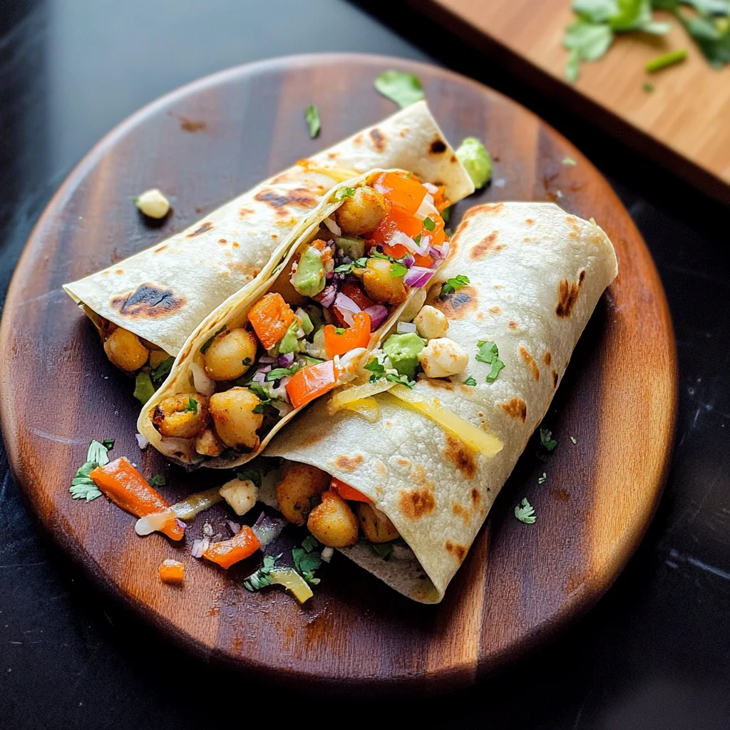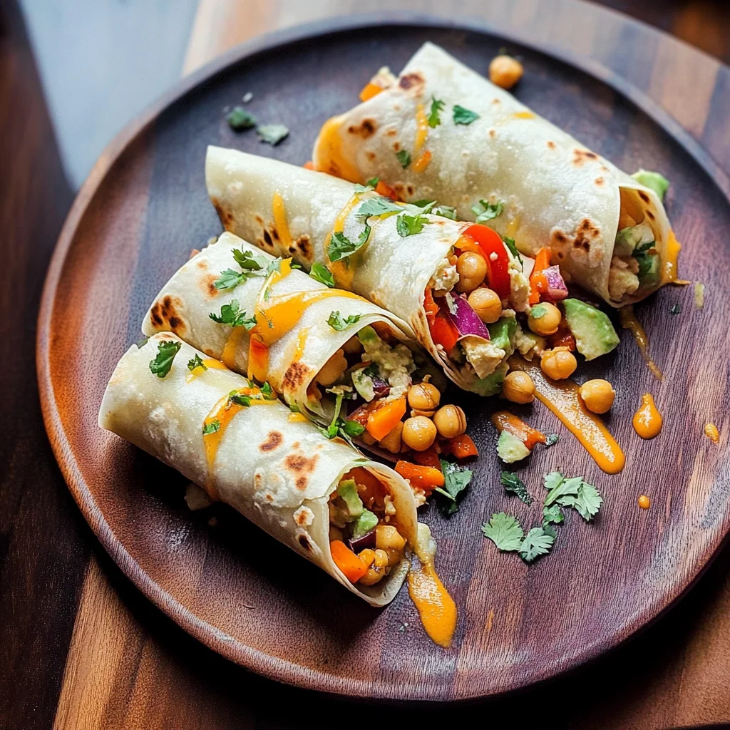 Start by preparing all your ingredients first. Sauté the chickpeas until golden, then toss in those vibrant veggies. While they cook, prepare the sauce to blend everything seamlessly into one delicious wrap.
