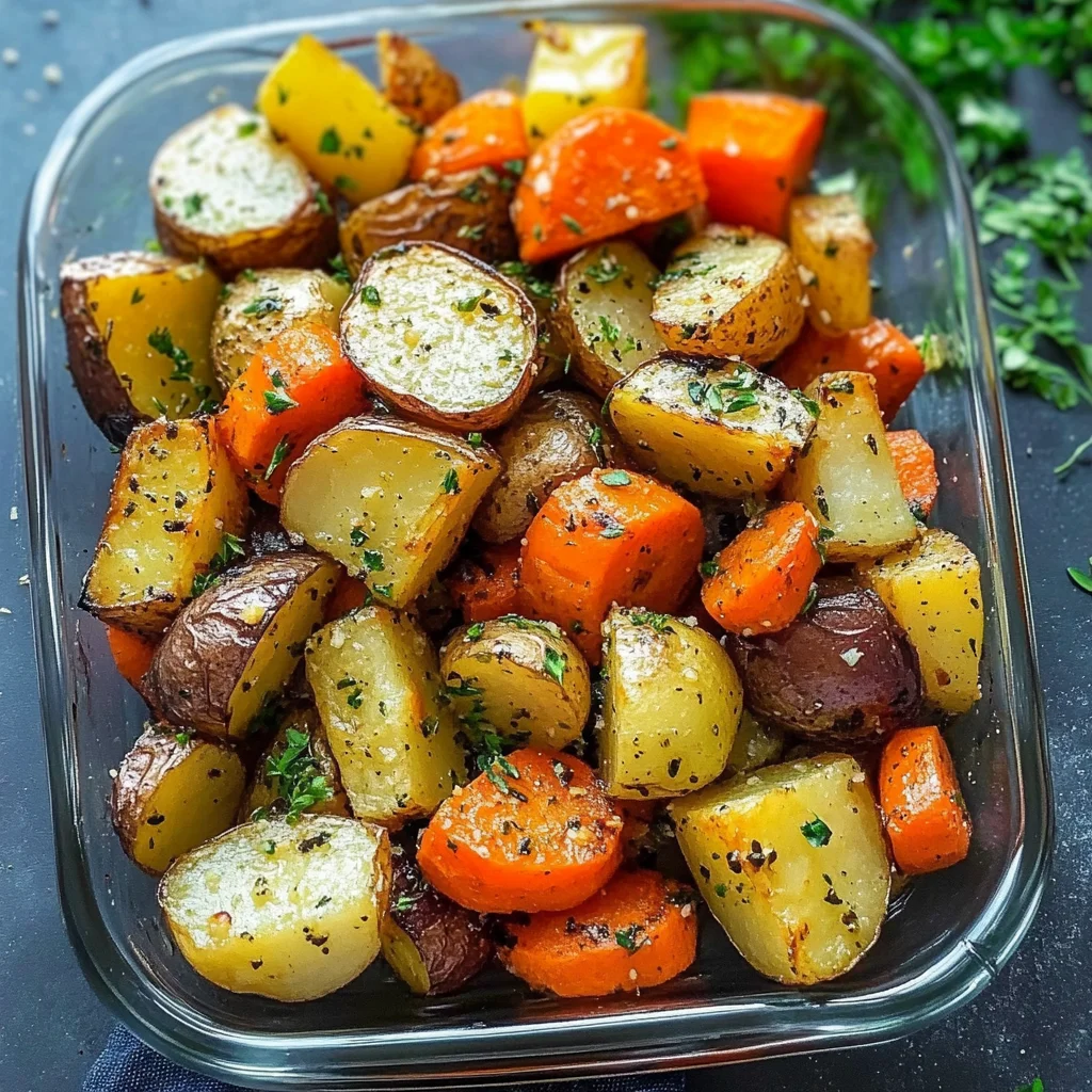 Yes, you can prepare Garlic Herb Roasted Potatoes Carrots and Zucchini ahead of time! Chop the vegetables and toss them with the garlic and herbs. Store them in an airtight container in the refrigerator for up to 24 hours before roasting. This method not only saves time but also allows the flavors to meld together nicely. When you’re ready to cook, just spread them on a baking sheet and roast as directed.