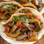 - Assemble fajitas by loading tortillas with the beef mixture and desired toppings. Serve immediately.