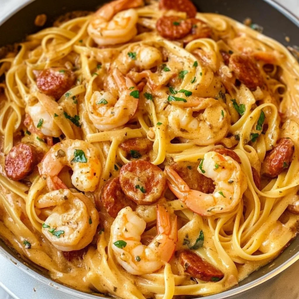 Sear the sausage first to infuse your skillet with flavor, then cook the shrimp until they’re tender and juicy. While that’s happening, boil your pasta separately and prepare the creamy sauce for a harmonious blend of tastes. For more inspiration, check out this Creamy Lemon Shrimp Pasta recipe.