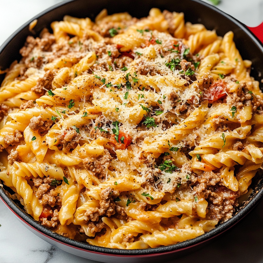 Indulge in the comforting and creamy goodness of Cheesy Rotini Pasta with Garlic Butter Sauce and Ground Beef. This delightful dish features tender rotini pasta enveloped in a rich, cheesy sauce made with savory ground beef and aromatic garlic. Perfect for weeknight dinners or casual gatherings, each bite brings warmth and satisfaction, making it a family favorite that will have everyone coming back for more.
