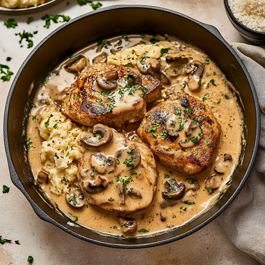 Transfer those mouthwatering pork chops onto plates and spoon over that heavenly mushroom sauce. Garnish with fresh parsley for a pop of color. Serve hot and get ready for compliments!