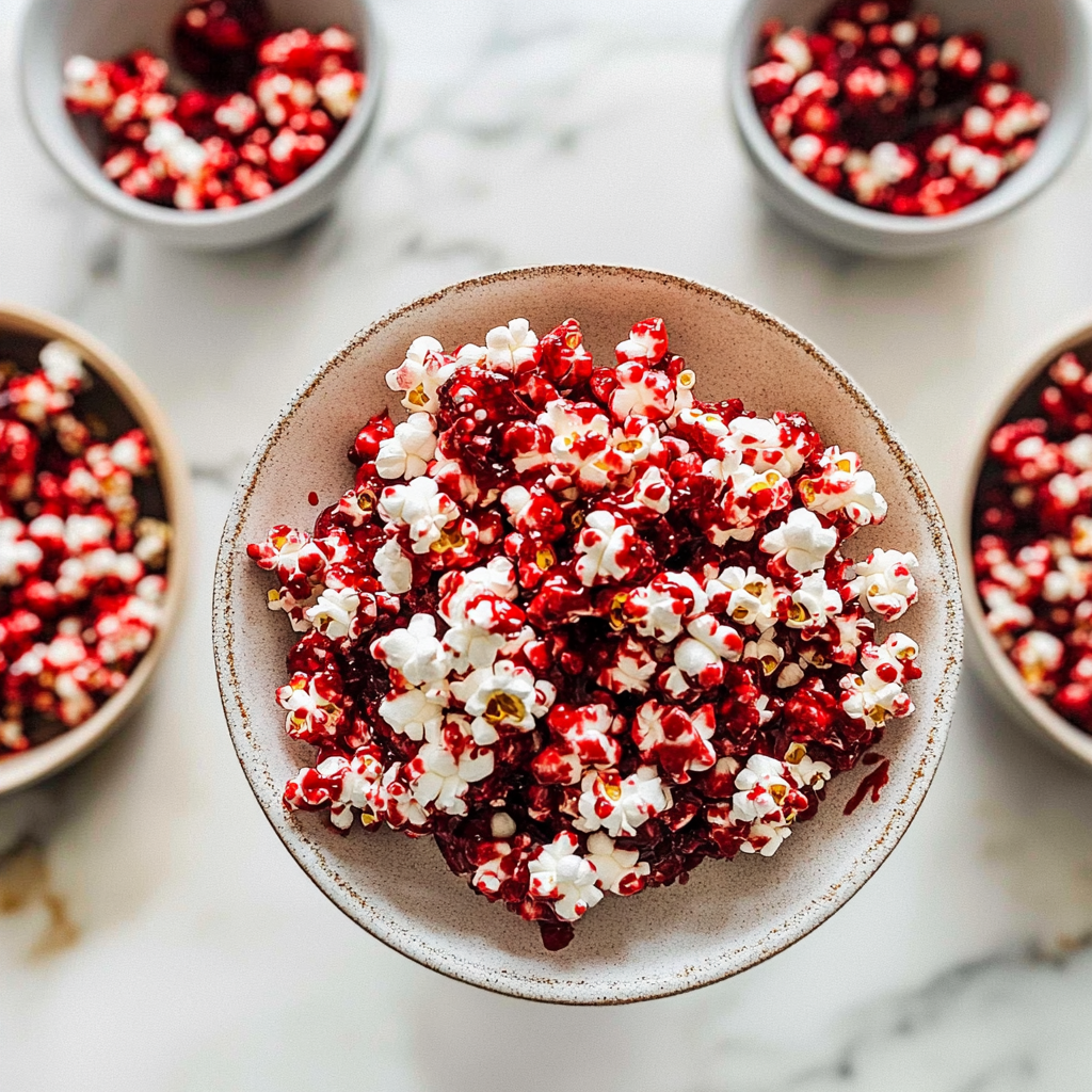 In summary, Bloody Red Velvet Popcorn is a fun and tasty snack that combines the beloved flavors of red velvet cake with crunchy popcorn. Making this treat at home is simple and allows for customization to match your personal taste. savory comfort food Whether you’re preparing for a party or just want to indulge in something sweet, this recipe is sure to impress everyone who tries it!