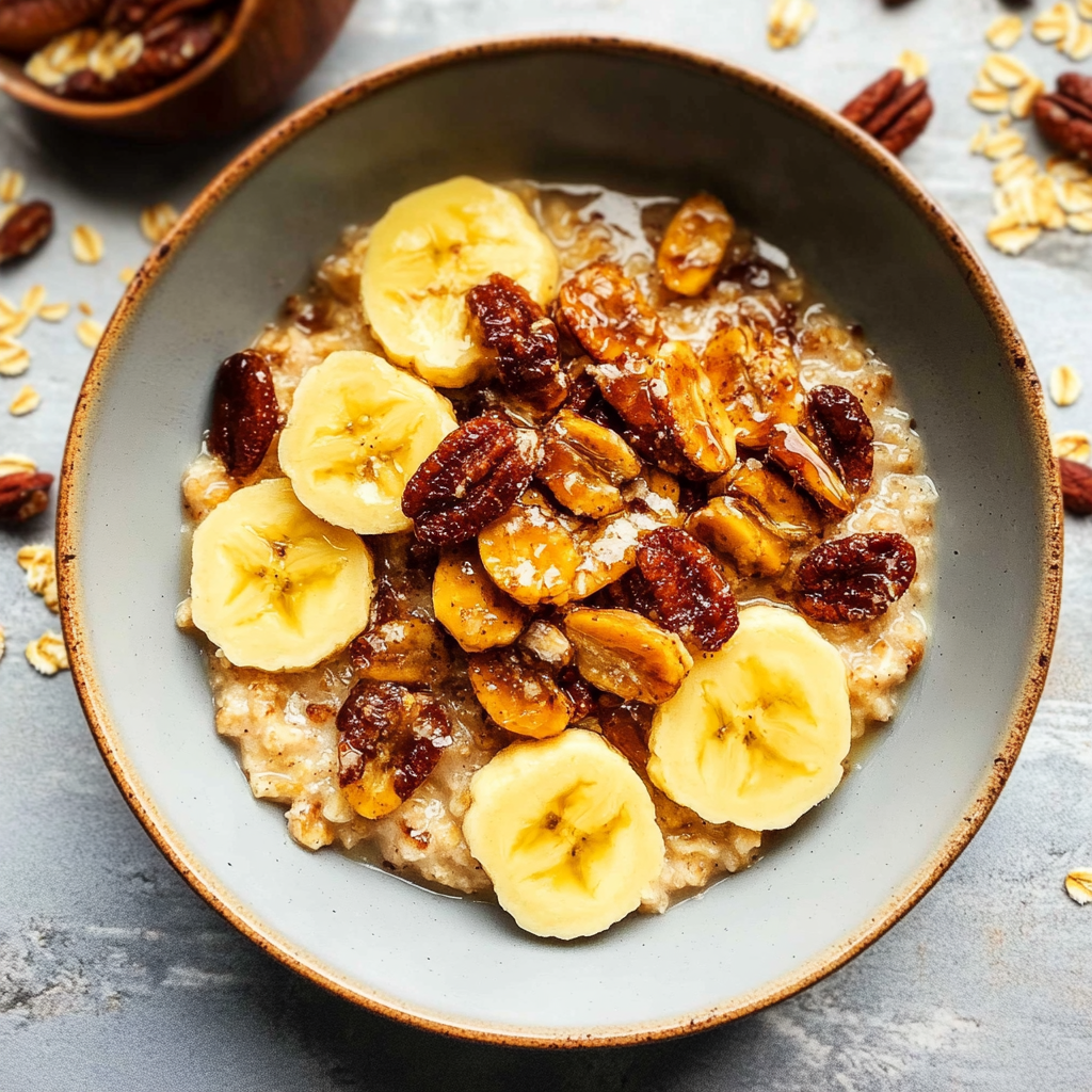 Start by slicing ripe bananas and caramelizing them in a pan with a bit of butter and brown sugar. Meanwhile, cook your oatmeal according to package instructions. Once both are ready, combine them for an irresistible breakfast treat.