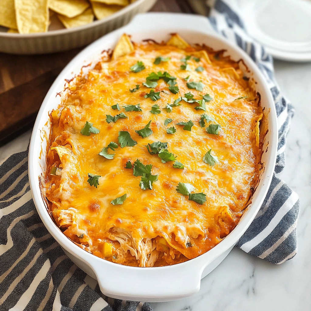 Chicken enchilada dip pairs well with various dippers that enhance its flavors. Tortilla chips are a classic choice, providing a crunchy texture that complements the creamy dip. Fresh veggie sticks like carrots, celery, or bell peppers offer a healthier option. For a festive touch, consider serving it with mini tacos or quesadillas cut into bite-sized pieces. Whatever you choose, this versatile dip will be a hit at any gathering!