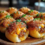 Garlic Parmesan Cheeseburger Bombs are delicious stuffed treats that combine the flavors of cheeseburgers and garlic Parmesan. These bite-sized snacks typically consist of a seasoned ground beef filling, melted cheese, and a buttery garlic Parmesan crust. They are perfect for parties, game days, or as a satisfying appetizer. The combination of savory flavors in each bomb makes them irresistible and a crowd favorite. For more inspiration, check out this Irresistible Garlic Shrimp recipe.