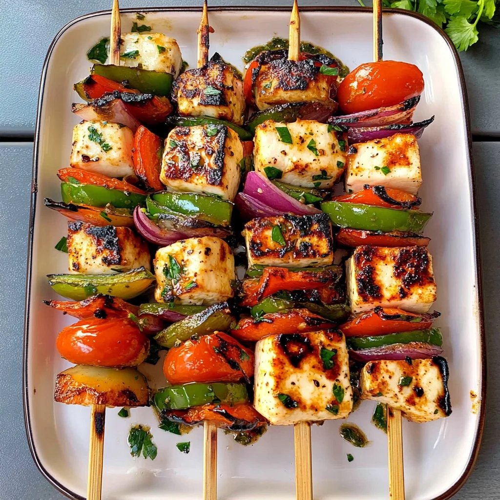Grilled Halloumi Skewers are a vibrant and delicious dish that perfectly blend the rich flavors of crispy halloumi cheese with fresh, colorful vegetables. Ideal for summer gatherings, these skewers are not only visually appealing but also easy to prepare. Each bite offers a delightful mix of textures and tastes, making them a standout appetizer or main course that will keep your guests coming back for more!
