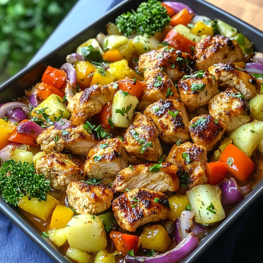 Hawaiian Chicken Sheet Pan is a vibrant one-pan meal that transports your taste buds to the islands with its sweet and savory flavors. Featuring juicy chicken thighs, fresh pineapple, and colorful vegetables, this dish is as easy to make as it is delicious. Perfect for hectic weeknights or special gatherings, it requires minimal cleanup, allowing you to enjoy a tropical feast with family and friends.
