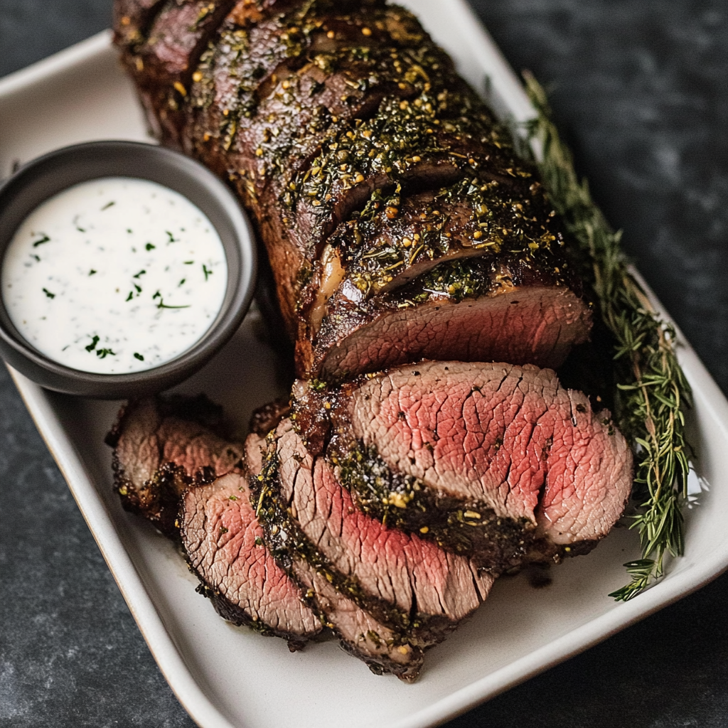Herb-Crusted Prime Rib with Horseradish Sauce is the epitome of gourmet dining at home. This succulent roast, enveloped in a fragrant herb crust and paired with a zesty horseradish sauce, transforms any meal into a festive celebration. Perfectly cooked and bursting with flavor, this dish will dazzle your guests and leave them clamoring for more.
