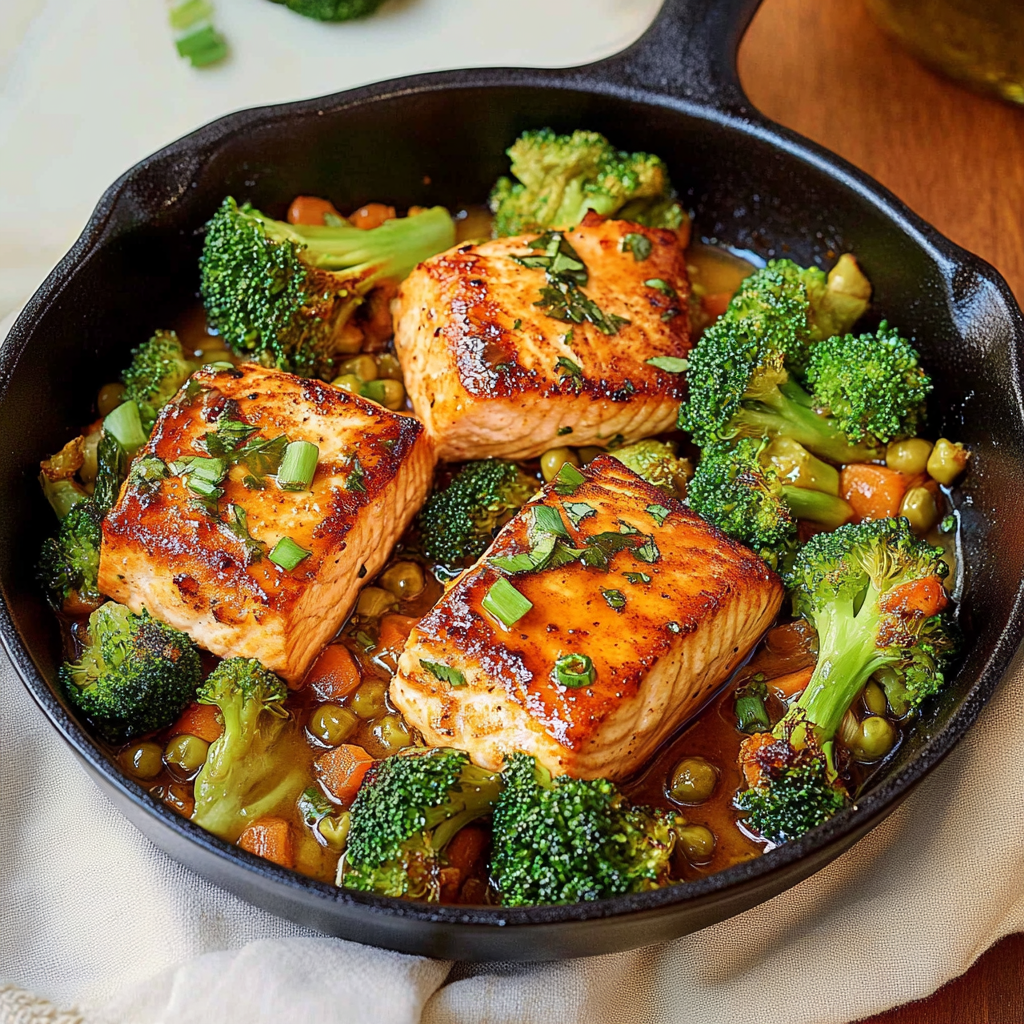 Honey Garlic Glazed Salmon with Steamed Broccoli is a flavorful and healthy dish that combines succulent salmon fillets coated in a sweet-savory honey and garlic sauce, served alongside vibrant steamed broccoli. This easy-to-make recipe is perfect for both busy weeknights and special occasions, ensuring a delightful meal that will impress family and friends with its rich flavors and beautiful presentation.