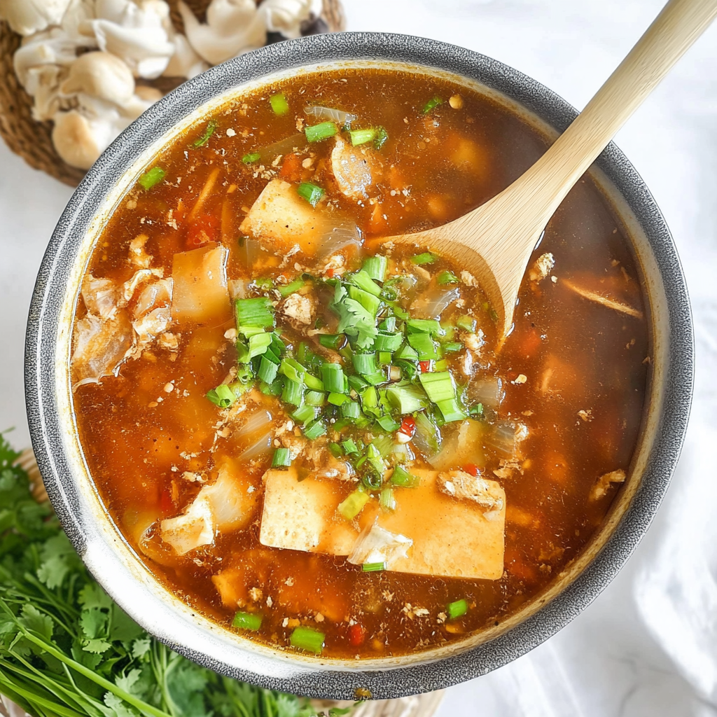 Hot and Sour Soup is a comforting, flavorful dish that perfectly balances spicy and tangy notes. This delightful soup combines a rich broth with tender tofu, fresh shiitake mushrooms, and vibrant green onions for a satisfying experience. Ideal for chilly days or as a quick weeknight dinner, this easy-to-make recipe will warm your soul with every spoonful.