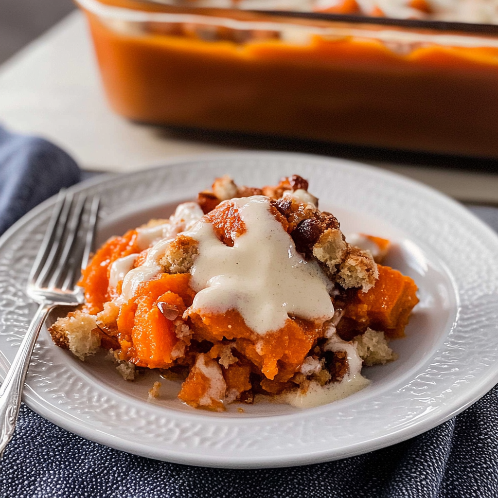 In summary, loaded sweet potato casserole is a delightful dish that combines flavors and textures perfectly. With its base of creamy sweet potatoes topped with crunchy pecans, mini marshmallows, and optional bacon bits, it’s sure to please everyone at your table. Preparing this recipe is straightforward and can even be done ahead of time for convenience. Whether served during holidays or family dinners, this casserole is a must-try comfort food that brings warmth and joy to any occasion.