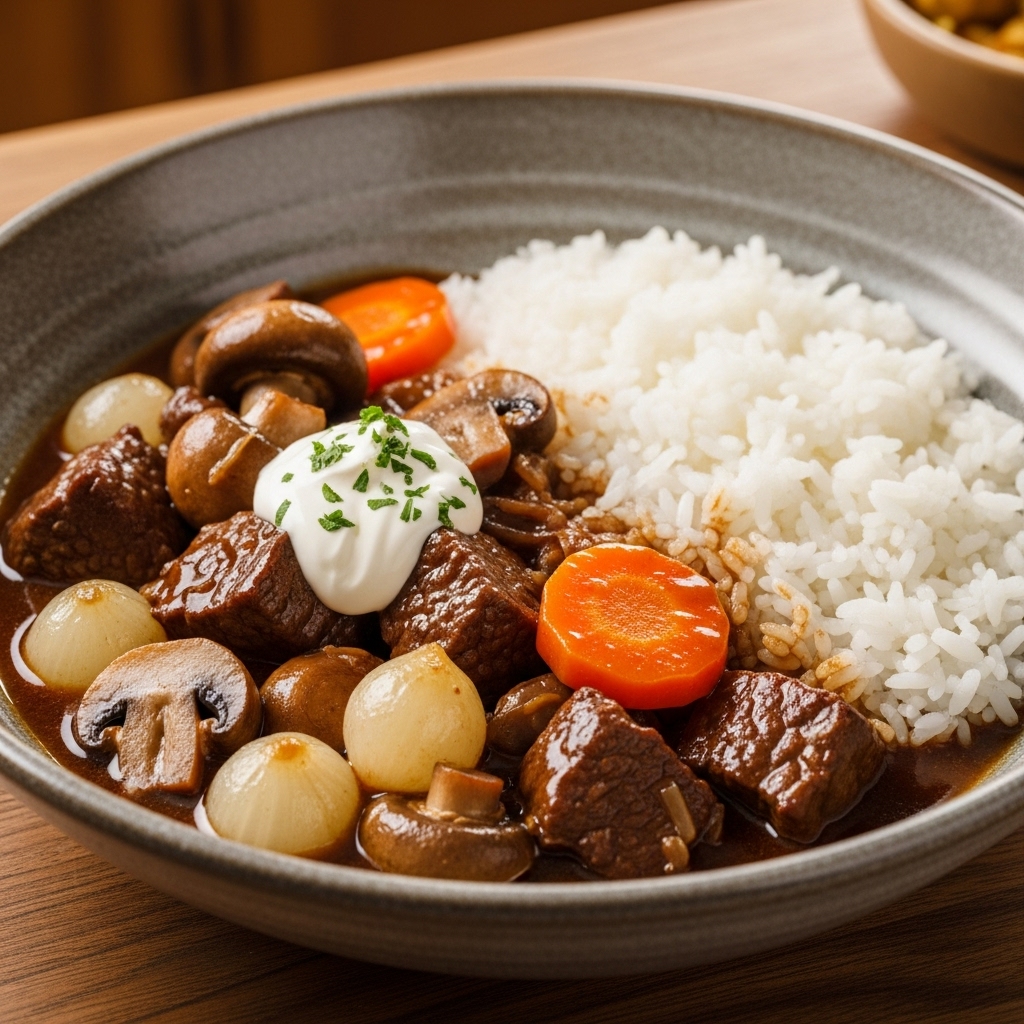 Slow Cooker Japanese Beef Stew, also known as Hayashi Rice, is a savory dish made with tender beef simmered in a rich, flavorful sauce. This hearty meal typically includes onions, mushrooms, and carrots, all cooked slowly to infuse the flavors. creamy creamed corn The stew is often served over steamed rice, making it a comforting and satisfying option for dinner.