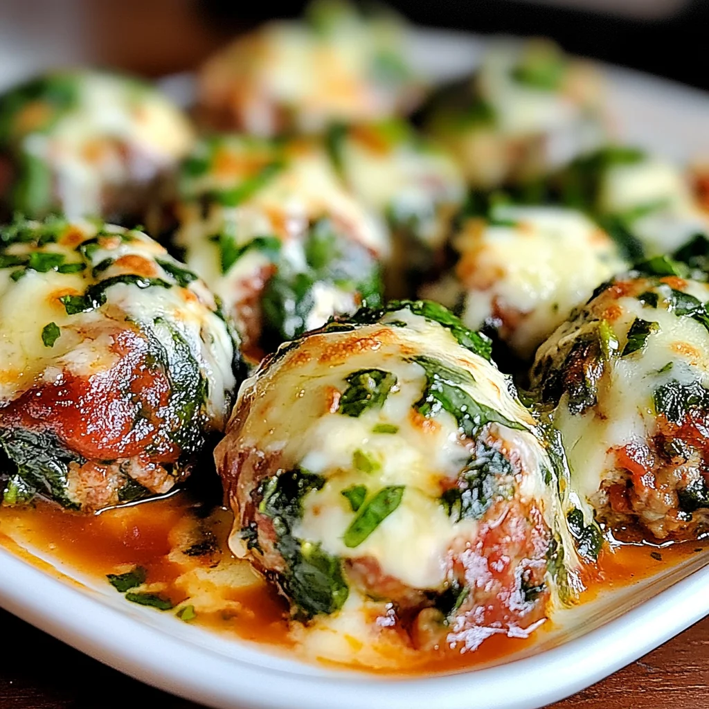 Start by mixing the meat, spinach, and garlic, then form them into balls. Sear those beauties in a hot skillet, making sure to brown them nicely. While they cook, prepare the marinara sauce and melt mozzarella on top for ultimate cheesiness.
