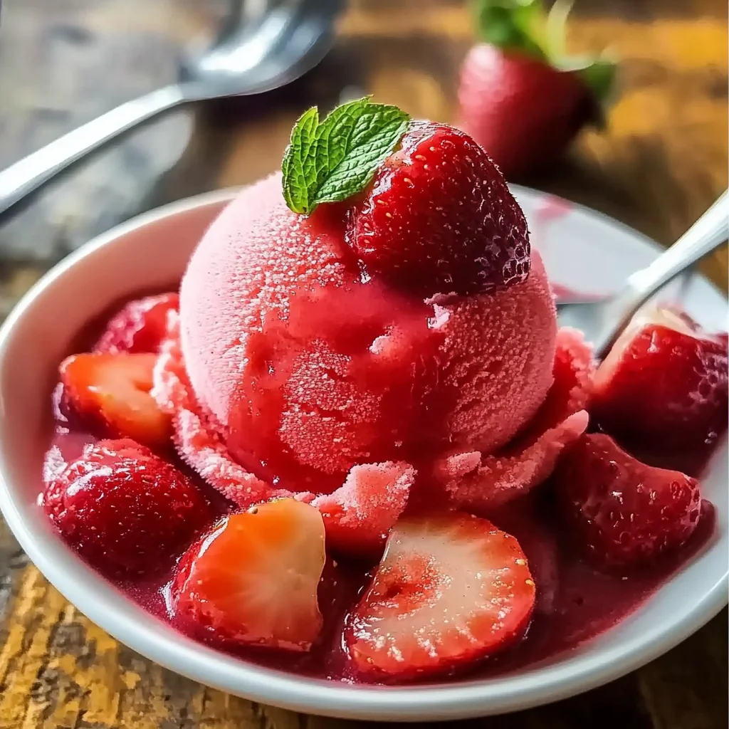 Strawberry sorbet is the perfect summer dessert, offering a refreshing burst of luscious strawberry flavor. This easy-to-make treat combines just four simple ingredients to create a vibrant, velvety sorbet that will delight everyone. Perfect for hot days, backyard barbecues, or as a light finish to any meal, this sorbet is both visually appealing and irresistibly delicious. Scoop it into bowls or cones, garnish with fresh mint, and savor every sweet bite of summer bliss.