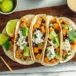 Sweet potato and black bean tacos are a deliciously vibrant plant-based dish that combines the natural sweetness of roasted sweet potatoes with hearty black beans, all wrapped in soft tortillas. Topped with creamy avocado and zesty salsa, these tacos are perfect for Taco Tuesdays or quick weeknight dinners. With their rich flavors and satisfying textures, they’ll impress your family and friends while keeping mealtime nutritious and enjoyable.