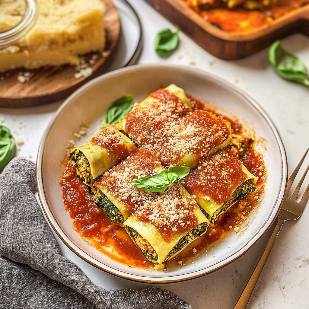 Vegan Zucchini Spinach Rollatini pairs well with various sides. Consider serving it alongside a fresh mixed greens salad dressed with balsamic vinaigrette for a refreshing contrast. Garlic bread or crusty whole-grain bread also complements the dish nicely, allowing you to soak up any extra marinara sauce. Fresh lasagna with eggplant You could even add steamed vegetables for an extra dose of nutrition on your plate.