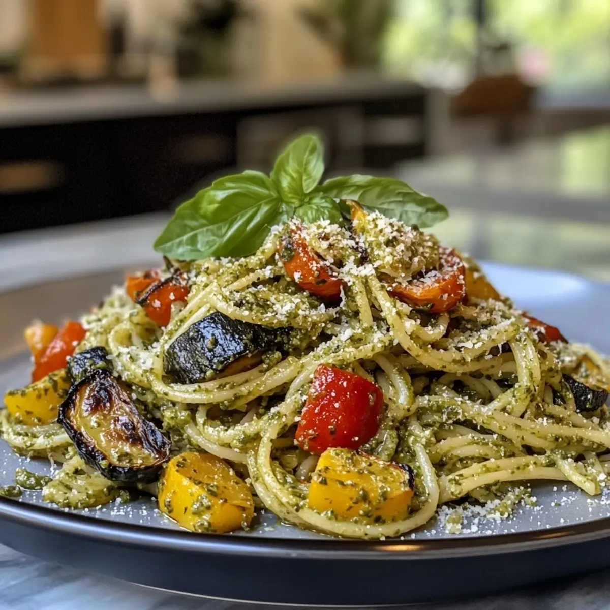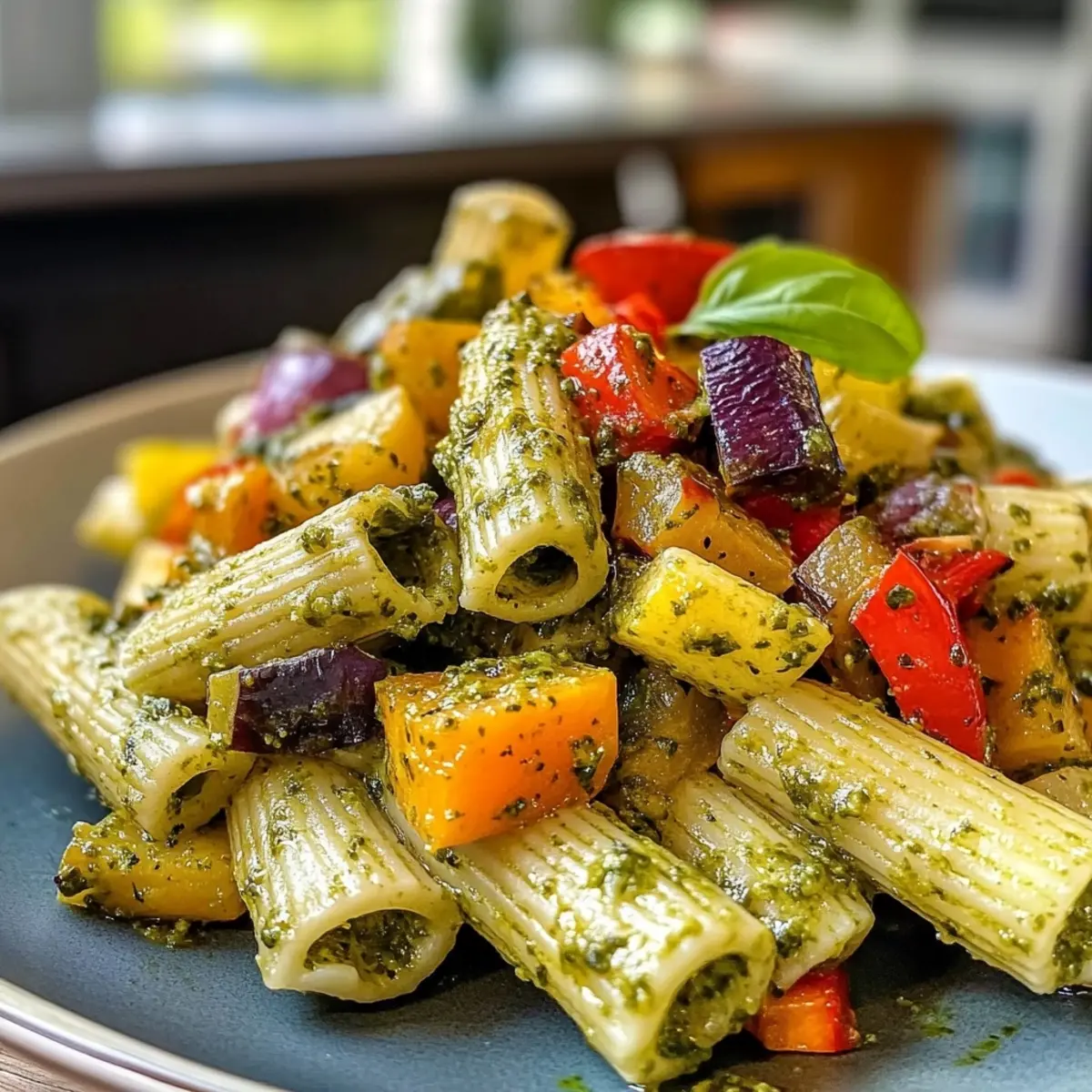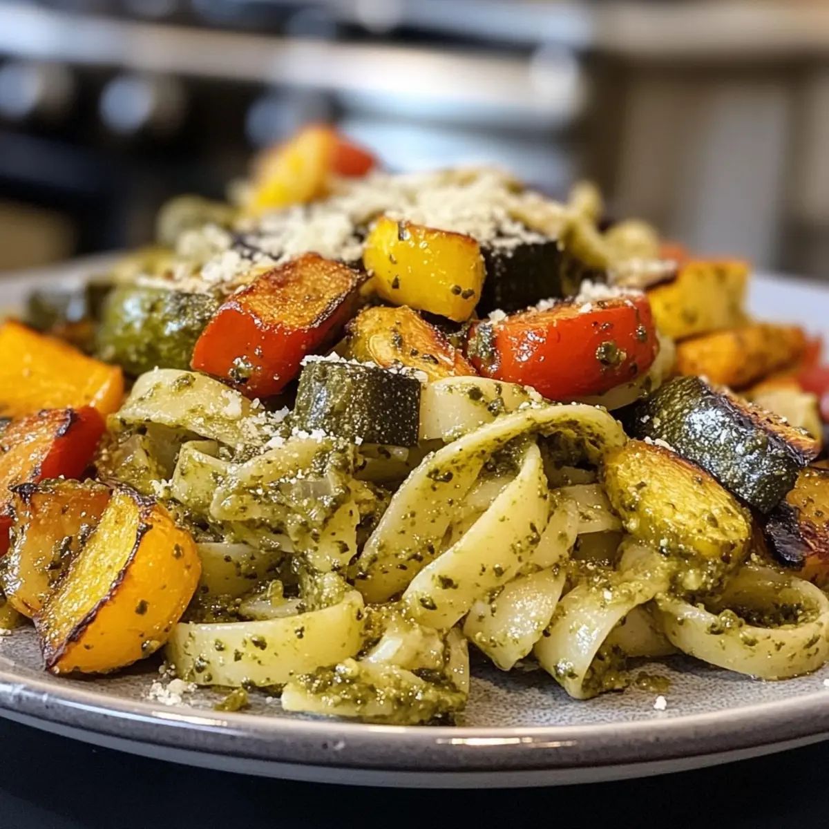 Creamy Pesto Pasta with Roasted Vegetables - Easy Weeknight Winner