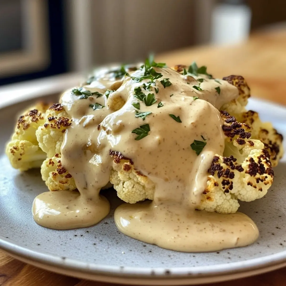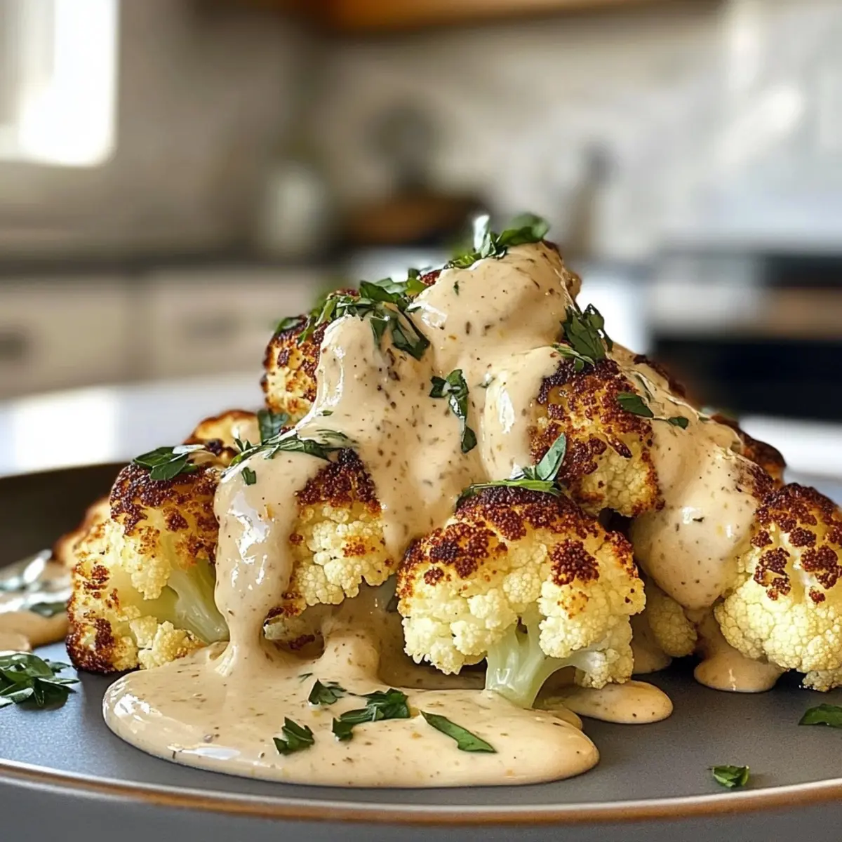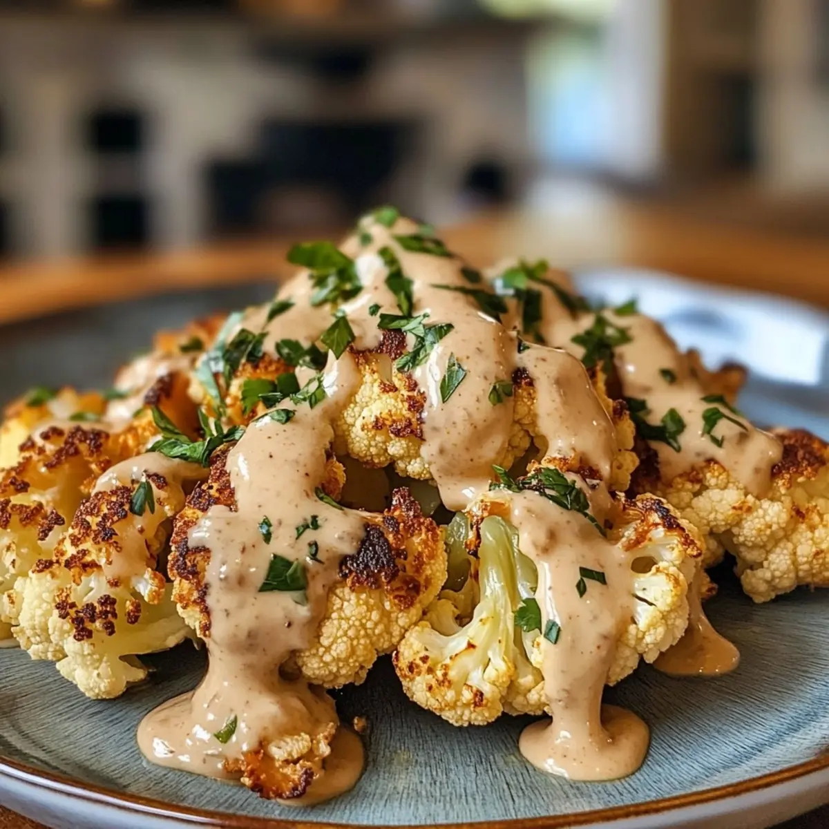 Irresistibly Tender Roasted Cauliflower with Tahini Sauce