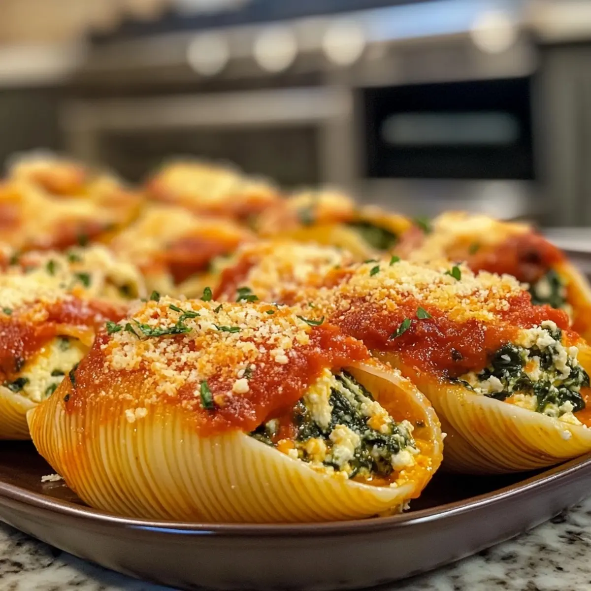 - Reheating: To reheat, place the shells in a baking dish with a splash of marinara sauce to keep them moist. Cover with foil and bake at 350°F (175°C) for about 25-30 minutes, or until heated through.