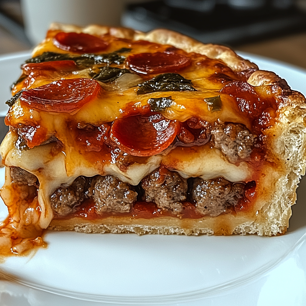 Deep Hamburger Sausage & Pepperoni Pie is the ultimate comfort food that combines a flaky, golden crust with a savory filling of ground beef, Italian sausage, and zesty pepperoni. Each slice offers a melty cheese experience that’s perfect for any occasion, from casual family dinners to festive game nights. Easy to prepare and fully customizable, this dish will quickly become a favorite among friends and family.
